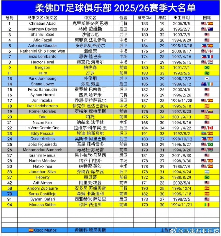 受转会窗口未关闭影响,尚不确定柔佛DT是否会延续去年策略,即专为亚冠赛事签约外援。当前阵容信息更新至2025年8月15日。